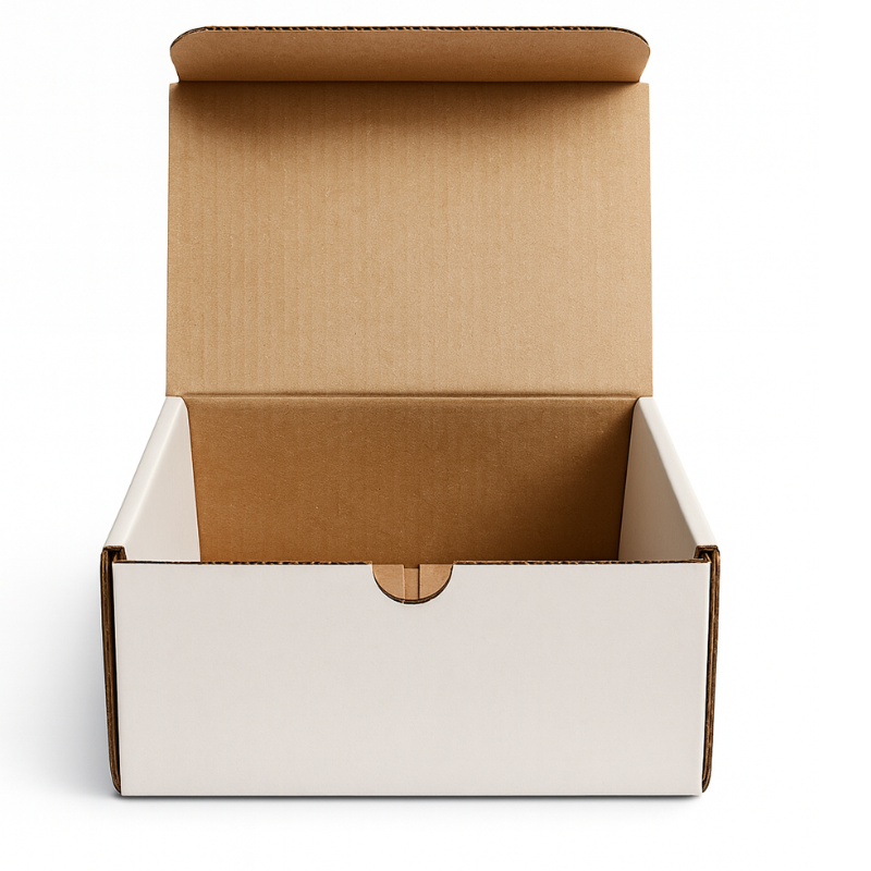Grazie al pratico sistema di chiusura automatica, questa scatola è facile e veloce da montare, riducendo i tempi di preparazione degli ordini. La colorazione bianco e avana naturale Kraft dona un aspetto minimal ed ecologico, ideale anche per personalizzazioni con etichette, timbri o packaging brandizzato.